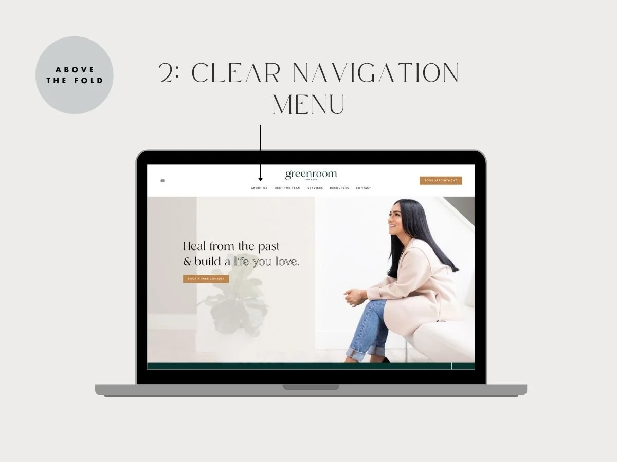 Strong navigation is another one of the most important features to have on your website above the fold. Well thought out navigation menu items help website visitors quickly and easily find what they are looking for and this most definitely needs to be placed above the fold of your website so potential clients can easily navigate where they’d like to go.