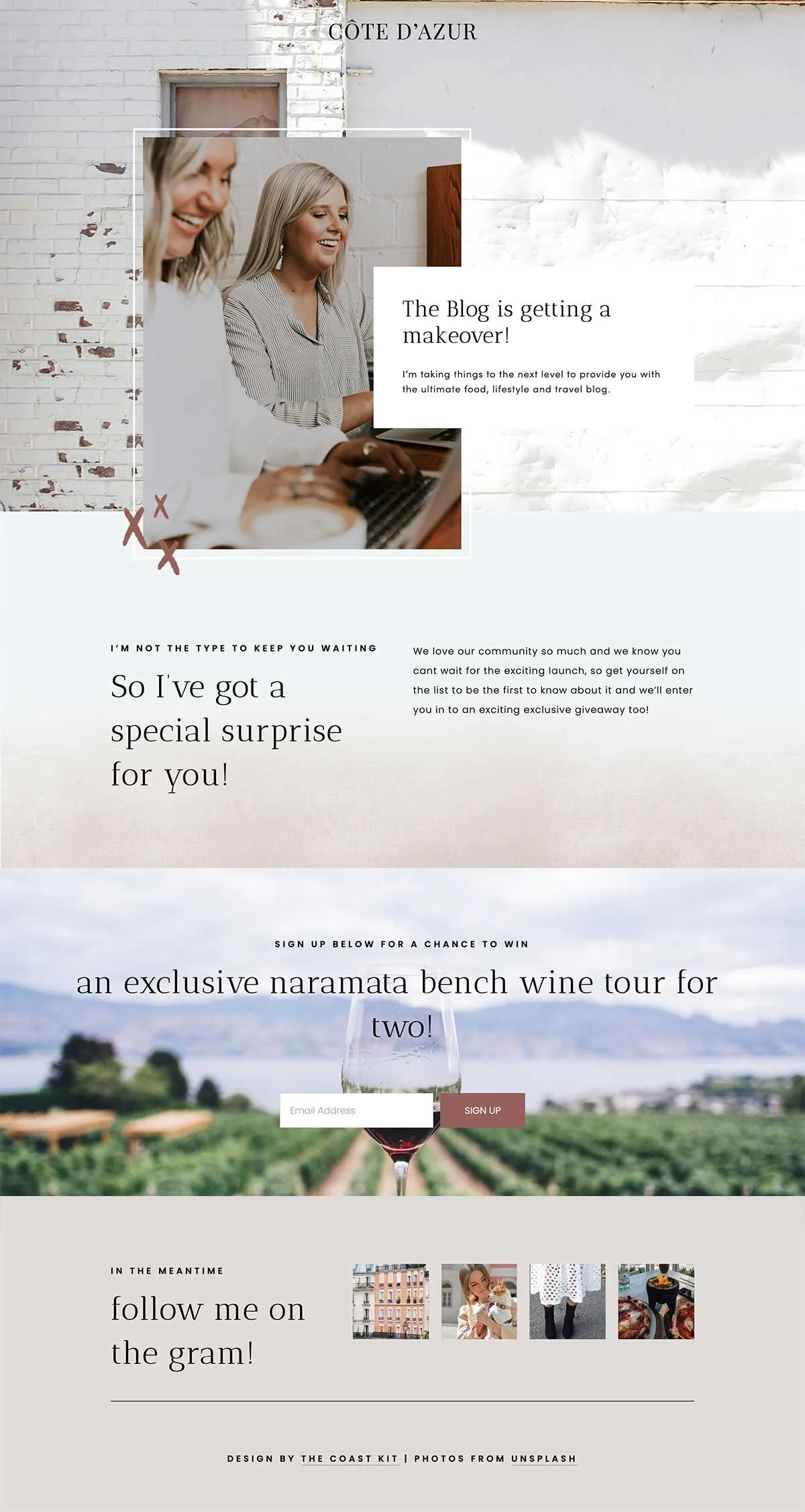 9) Now let’s get this cover page looking the way it should! Below the SOCIAL LINKS section, you’ll see the STYLE section. Within the Style section, feel free to customize the overall style of the Cover Page, ensuring its consistent with your website’s branding. We’ve styled ours using the same fonts and colours as Cote D’Azur, and voila! It now all comes together!