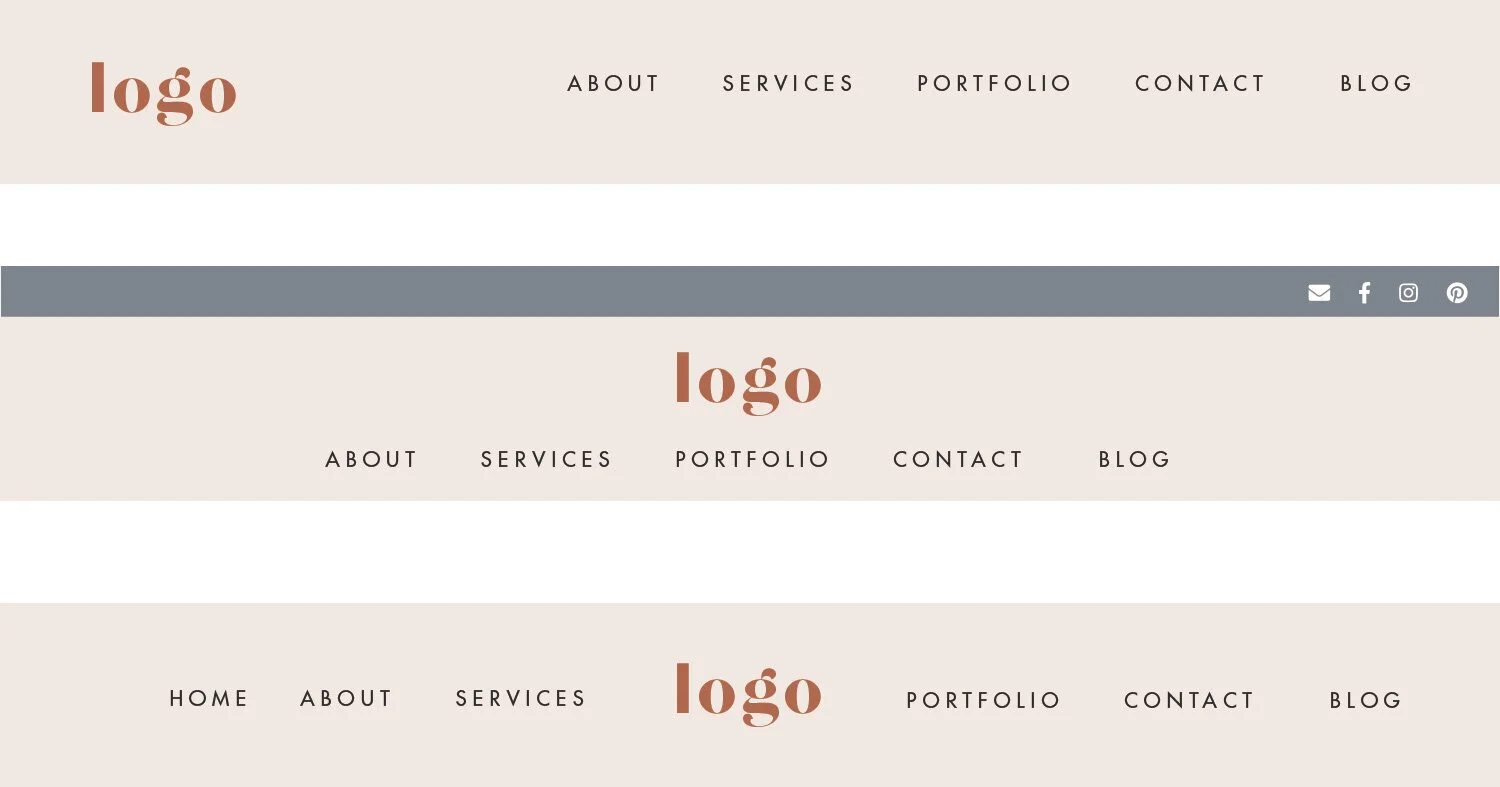 You’ll notice almost ALL of our templates (and heck, websites) have an ABOUT and CONTACT page, and those are basically a requirement. Why? Your clients want to know who YOU are, and then they WANT to work with you, so let’s make that as straight forward as possible. Having a HOME in your navigation isn’t *as* required, as most logos will link back to your homepage. And from there, it’s up to you to decide what’s best, are you wanting to showcase what you can do (SERVICES), display your portfolio (GALLERY), frequently create new content (BLOG), or sell items online (SHOP).